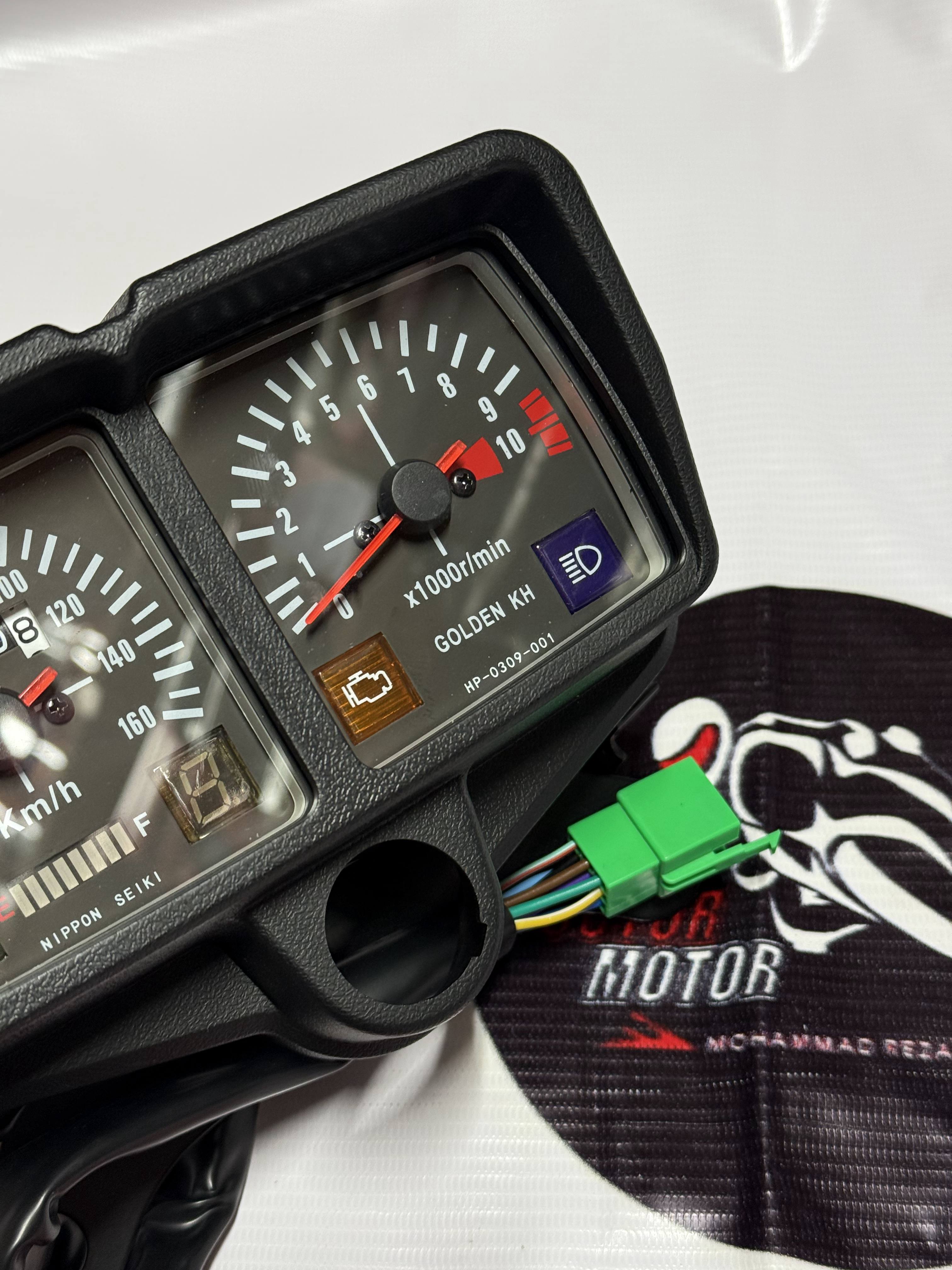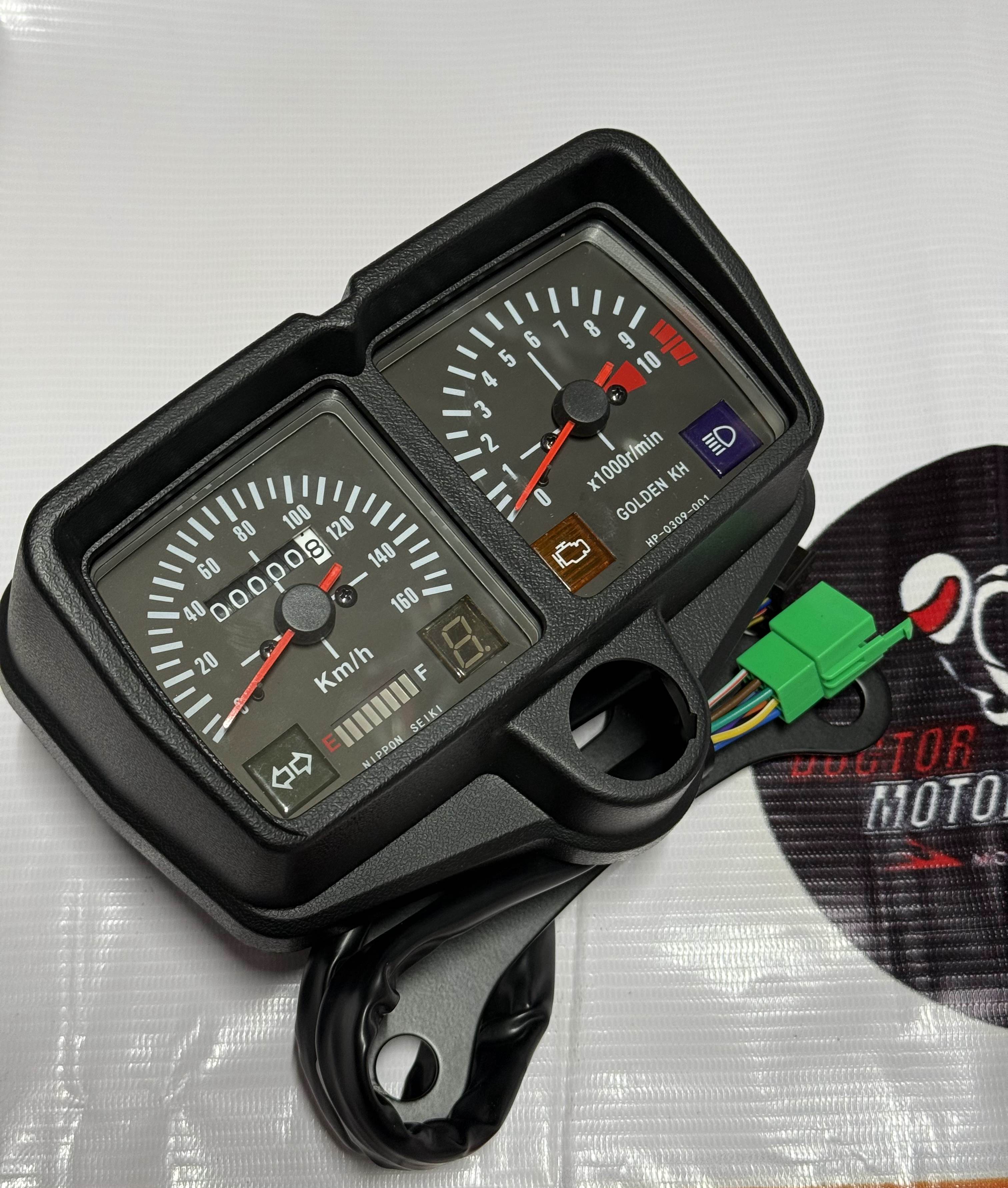 کیلومتر کامل انژکتوری دور موتور و کیلومتر عقربه ای.سرعت 160 تایی نمایشگر آمپر بنزین و نشانگر دنده دیجیتالی. مناسب برای انواع موتورسیکلت