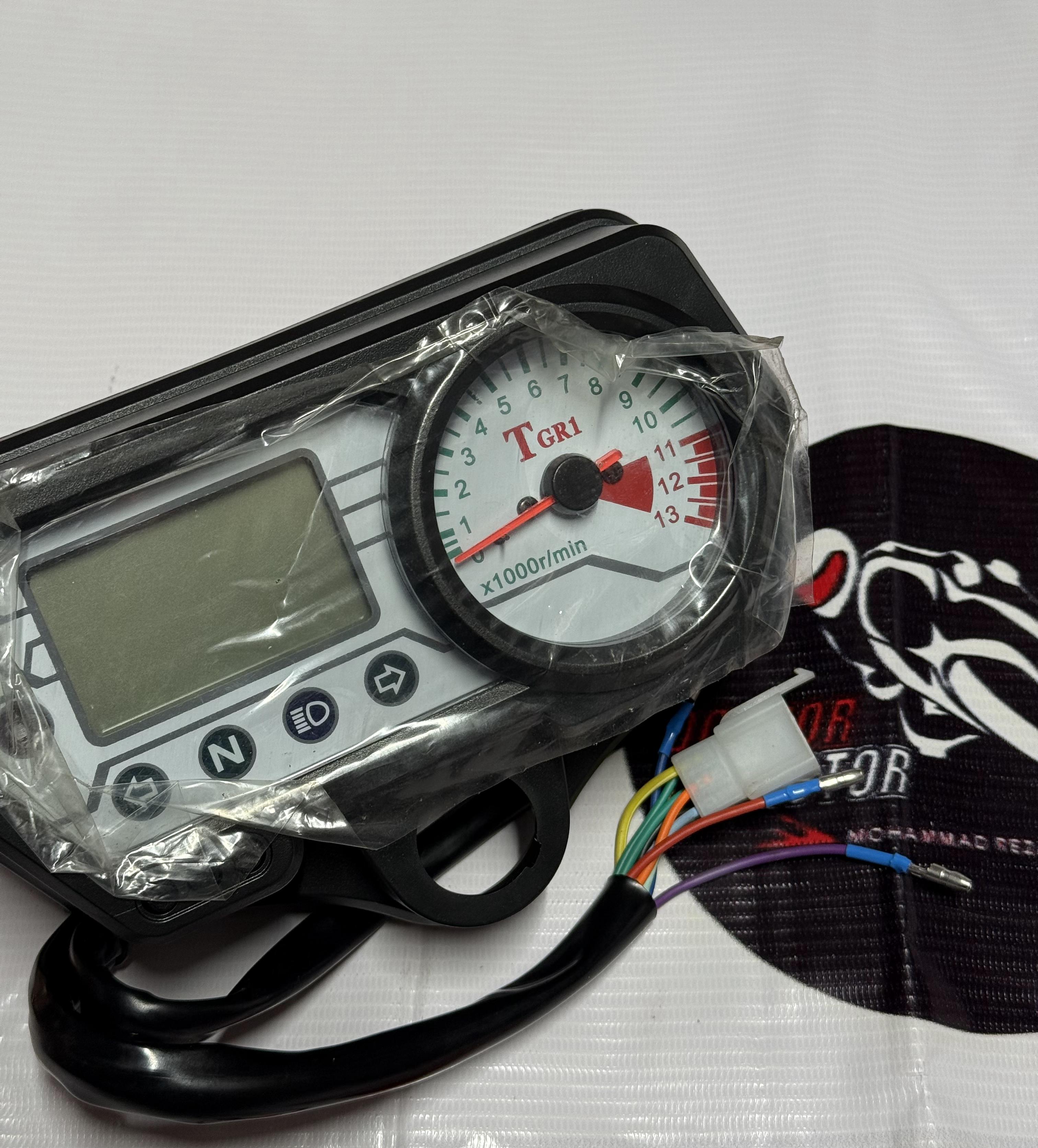 کیلومتر نیمه دیجیتال سرعت سنج دیجیتال نمایشگر دنده و آمپر و چراغ چک دیجیتال .با متریال خاص و جذاب مناسب برای انواع موتورسیکلت های انژکتوری و حتی کاربراتور